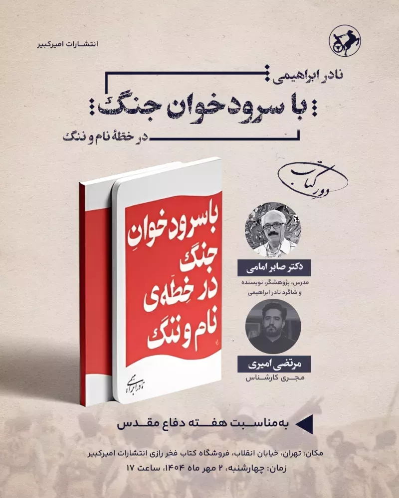 نشست کتاب «نادر و با سرود خوان جنگ در خطهی نام و ننگ» در کتابفروشی انتشارت امیرکبیر برگزار میشود.